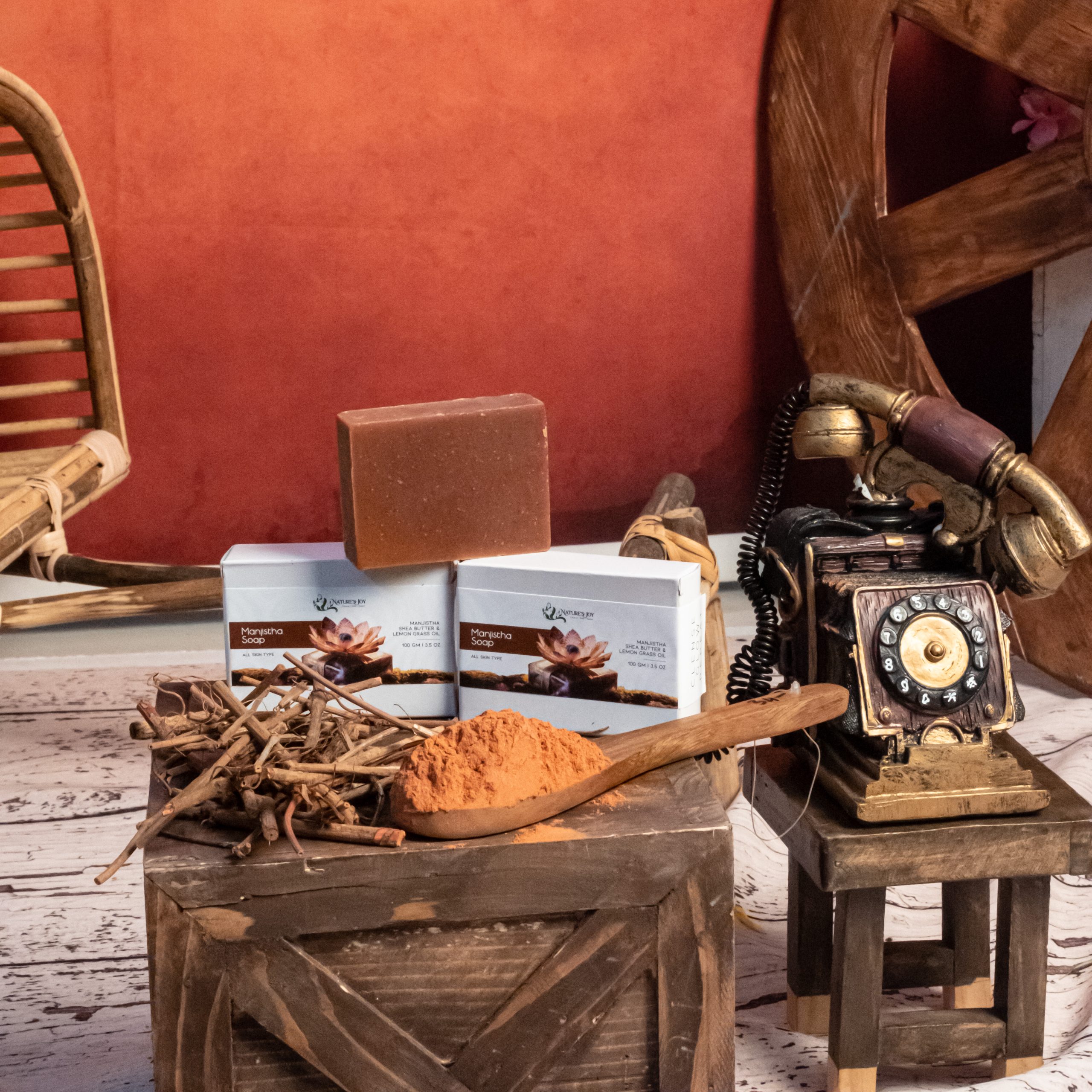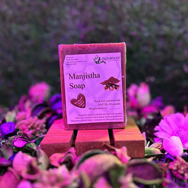 Ingredients: Manjistha extract, shea butter, coconut oil, olive oil, palm oil, castor oil, lemongrass oil, water, Sodium hydroxide.