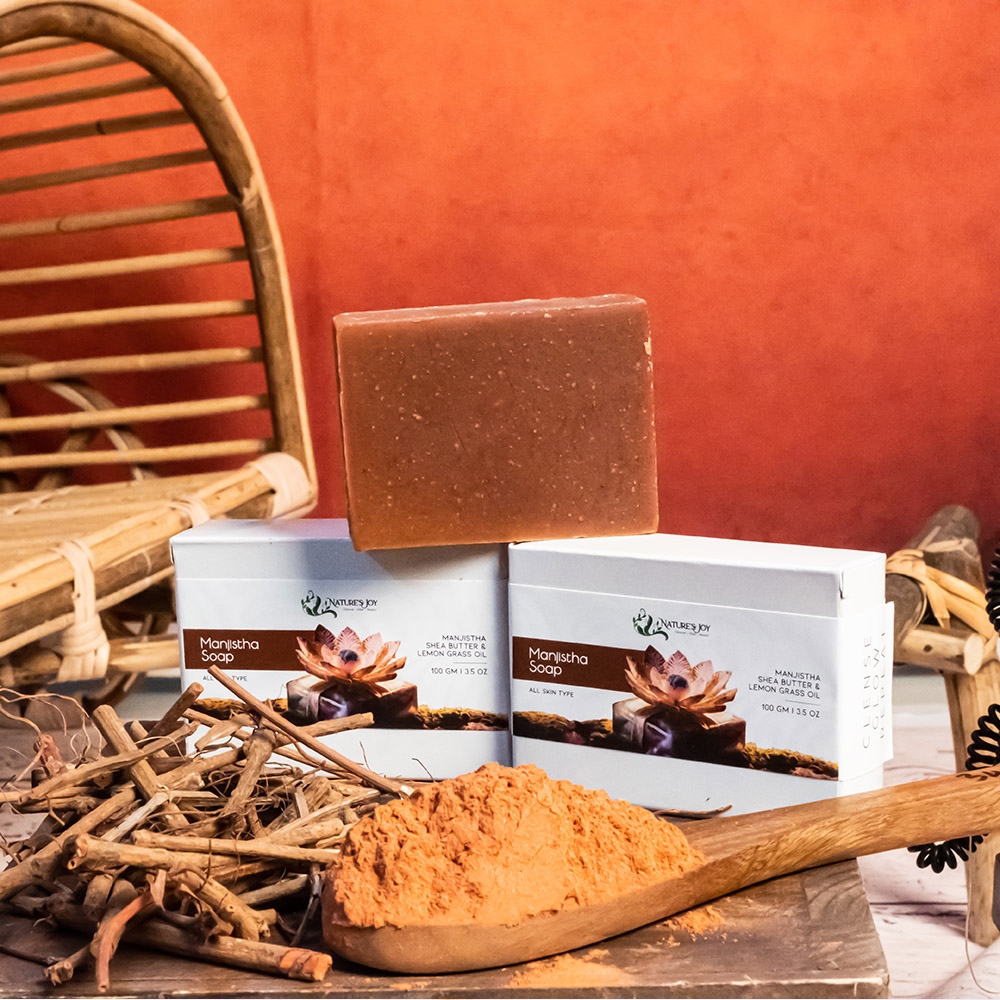 Our cold processed manjistha soap is made with oil infused with majistha roots, manjistha powder, and manjistha roots-infused water. Embrace the ayurvedic benefits of manjistha and unveil the secret to radiant and youthful skin with our cold processed manjistha soap.